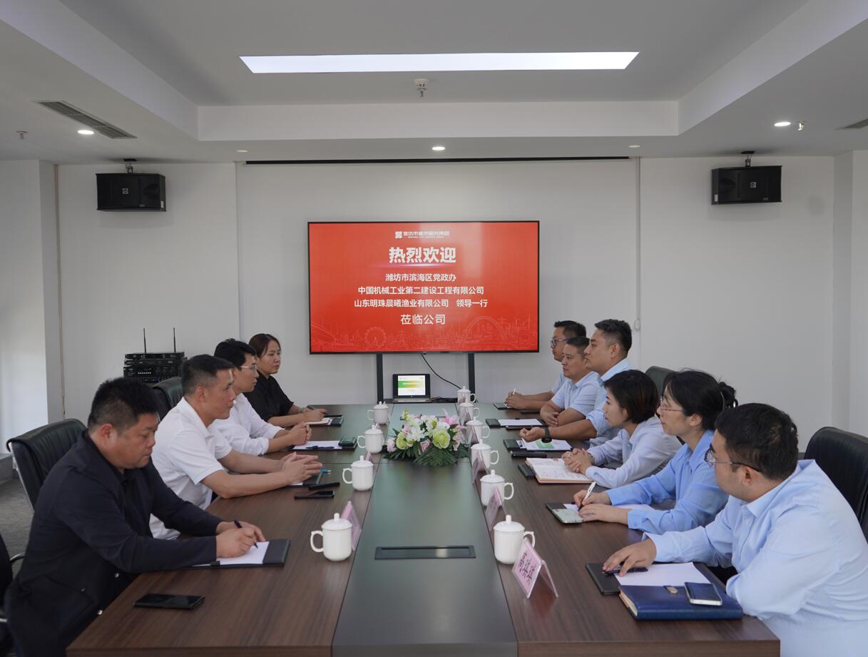 近日,濰坊市濱海區黨政辦、中國機械工業集團第二建設公司會同山東明珠晨曦公司、濰坊城市服務集團就陸海聯動數字漁業產業園項目的落地建設進行全面磋商研究.